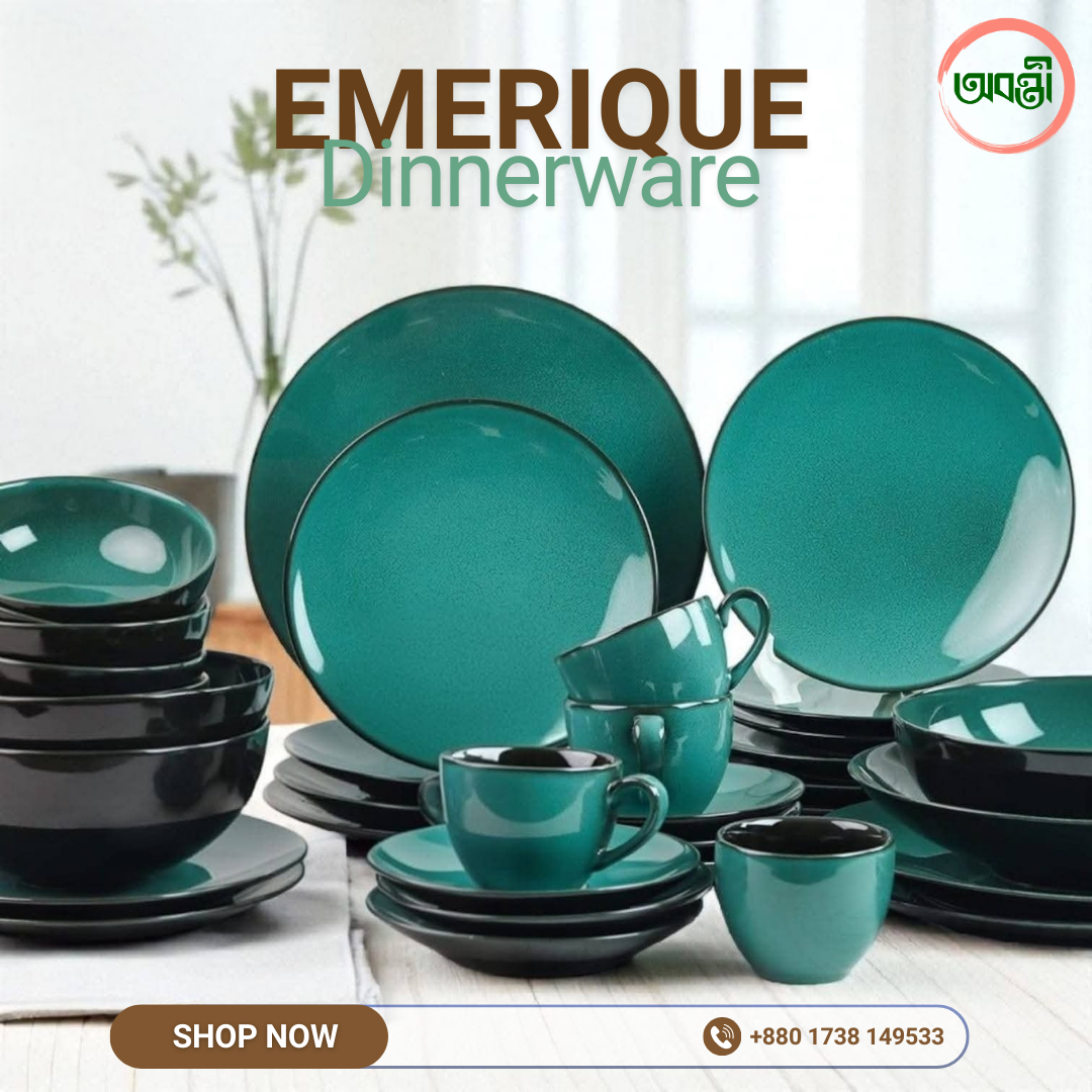 Give your table a sophisticated upgrade with the EMERIQUE Dinnerware Set, crafted from premium ceramic and designed with a stunning teal interior and sleek black exterior. A perfect fusion of style and practicality—ideal for daily meals as well as special occasions.